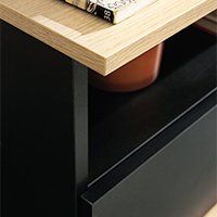 Отличават се със строги, геометрични форми, с добре балансирани пропорции. Вратите в дясната част на фронтовете са изработени в дъб, изпълнявайки ролята на вертикален декоративен детайл. В същият цвят е изработена и дясната страница и горен и долен плот на мебелите.
